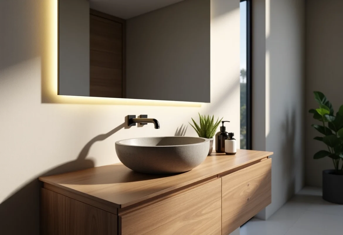 La salle de bain, espace intime et relaxant où l’on passe du temps chaque jour, bénéficie grandement de cette alliance entre nature et modernité. En intégrant ces éléments, vous êtes invité à découvrir nos vasques et à transformer votre espace en un véritable havre de paix.